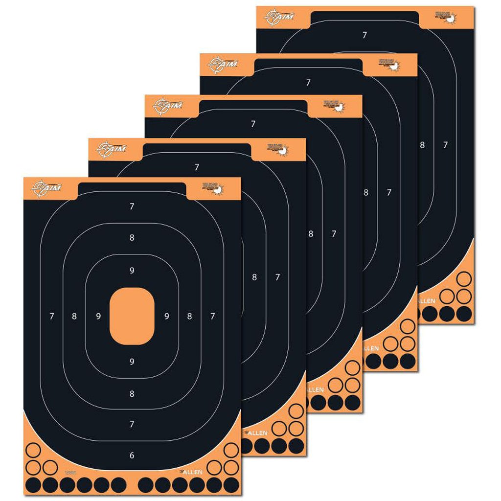 The Allen Adhesive Splash Handgun Training Target pack is designed to provide clear and immediate feedback during practice sessions. Each 12.5 x 18.25-inch target features Splash Technology, which creates a bright chartreuse halo around bullet holes for high visibility upon impact. The adhesive backing allows quick and secure application to most backstops without the need for clips or tape. Ideal for handgun training, the pack includes five targets and 18 bullet hole pasters per sheet, helping you extend target use while improving accuracy and tracking.