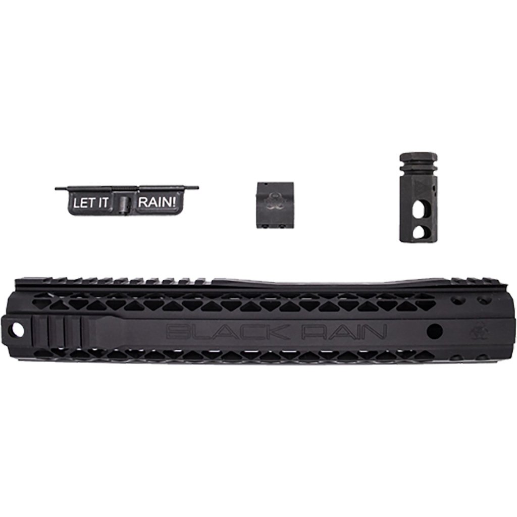 This kit includes a variety of components for your upper receiver build. Features a 12 inch? Hybrid MLOK rail with mounting hardware, a 5.56 precision hex compensator with crush washer, .750 adjustable gas block and a lasered dust cover.