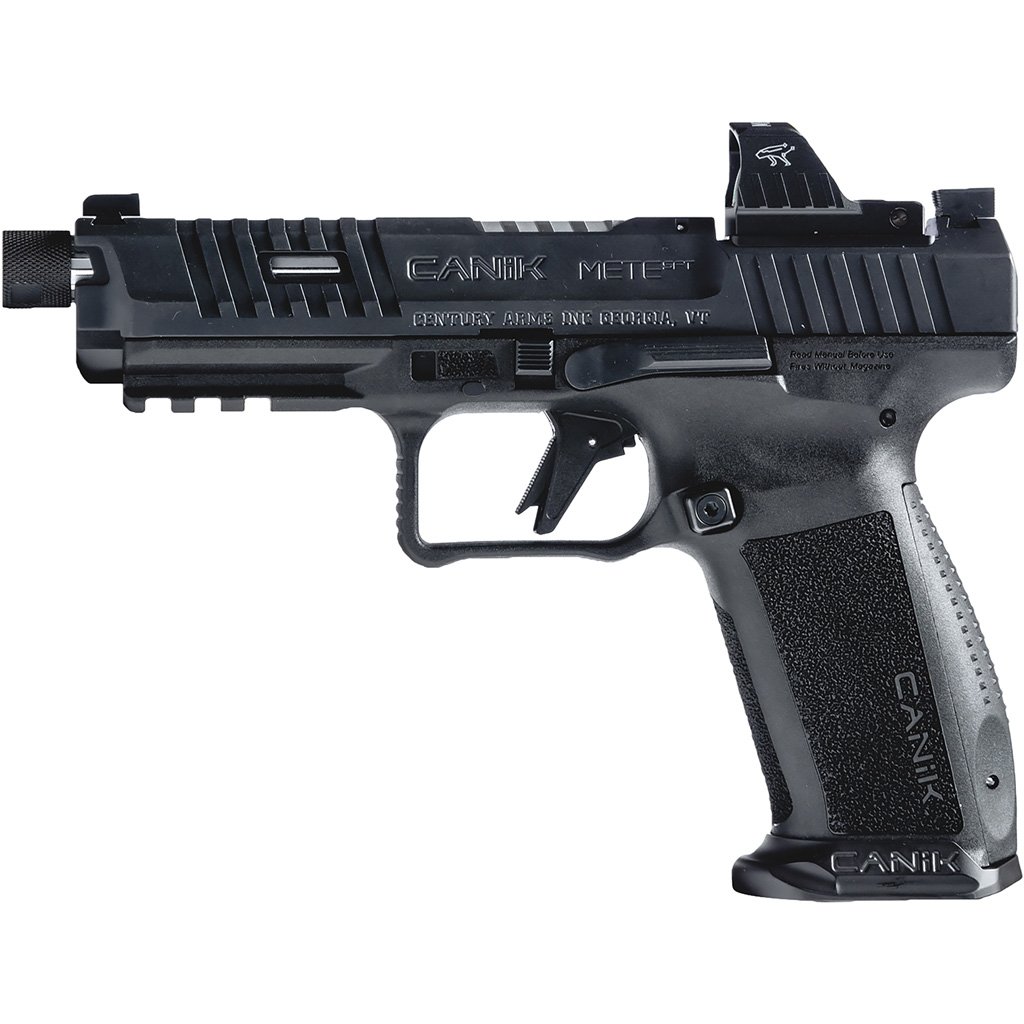 Features:Striker Fired 9mm;4.5 in. barrel;Inlcudes Optic sight;20 rd. magazine;Reversable mag release;Ambidextrous slide catch;Weight: 1.74 lbs;Cartridge: 9mm Luger;Magazine included: 1 x 18 & 1 x 20-round magazine;Frame material: Polymer;Overall length: 7.56″;Barrel length: 4.46″;Height: 5.72″;Width: 1.41″;Manufactured in Turkey;Front and rear sight: White Dot;Integrated flared mag-well;Angled rear sight edge for emergency one-hand operation;Co-Witness optics-ready slide cut;Optics-ready slide accepts Trijicon RMRcc and Shield RMS/RMSc footprint micro optics;Low profile ambidextrous slide stop release;Short reset single-action trigger with nickel-coated components;Aggressive front and rear slide serrations;1913 Picatinny under-barrel rail;Loaded chamber indicator;Side reversible magazine catch;Includes hard case, two magazines, EZ loader, Speed mag-well, extra backstrap, optics bases, Canik punch and toolkit, cleaning kit, gun lock, and manual