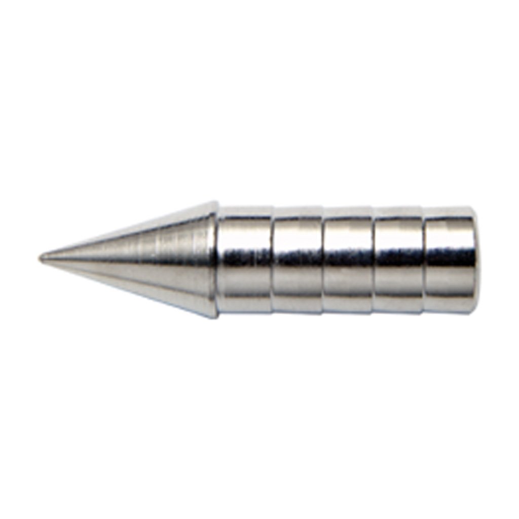 Cone shaped point designed to help eliminate deflections in hard targets. Steel construction inner chamber is tapped to accept screw point weights.