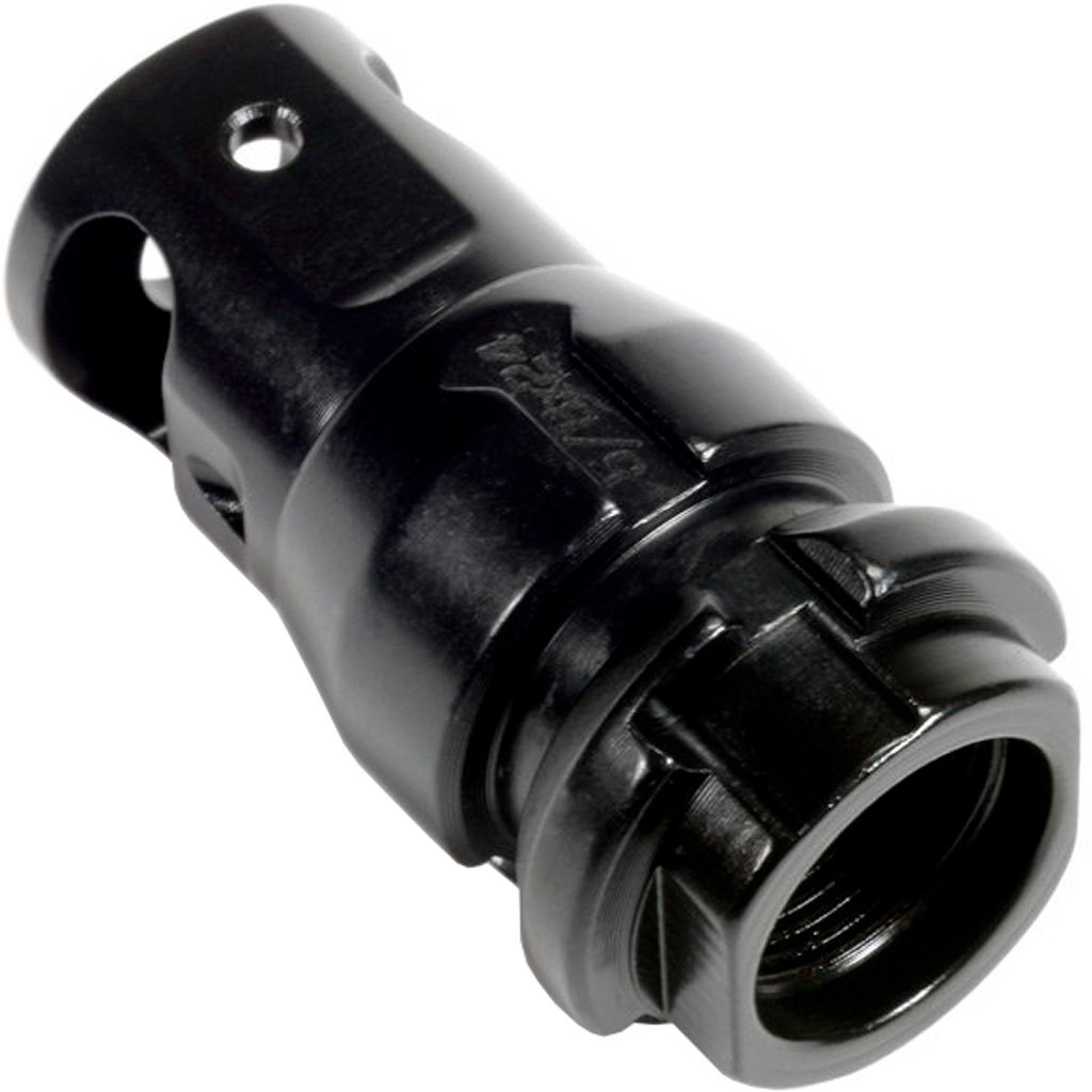 Features:Single-port muzzle brake with a compact and lightweight design;Features a 9mm bore for versatile application;Compatible with KeyMicro and KeyMo adapters;Works with Wolfman (KeyMicro adapter), Ghost 45 (KeyMicro adapter), Sandman series, Nomad series (KeyMo adapter), Primal, Sierra 5, and Wolverine (HUB adapter);Made from durable 4140 HT alloy steel;Black nitride finish for superior corrosion resistance;Weight: 3.41 oz;Length: 2.063 inches;Offers precision braking and minimal added weight;Designed for seamless integration with Dead Air mounting systems