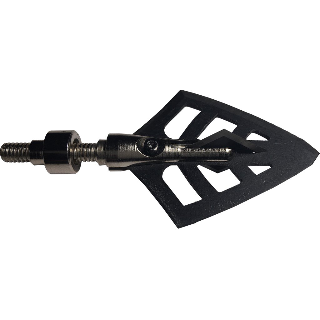 All steel construction and the single bevel head design make this one incredibly tough head. The right grind single bevel design is proven for bone busting and increased tissue damage. Includes 25 grain Modular Weight System. 1 3/16? main blade cut with 5/8? bleeder blade cut.