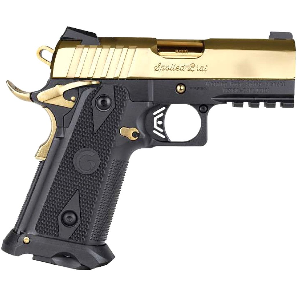 The EAA Girsan Witness 2311 Spoiled Brat is a compact, double-stack 1911 crafted for concealed carry. This 9mm pistol features a sleek 3.4-inch barrel, modern sight system, ambidextrous safety, and extended beavertail for exceptional handling. Its standout design includes a bold titanium nitride gold slide and barrel paired with a striking black frame. With a crisp trigger, accessory rail, and magazine well, the Spoiled Brat delivers both style and performance, making it ideal for personal defense and range use.