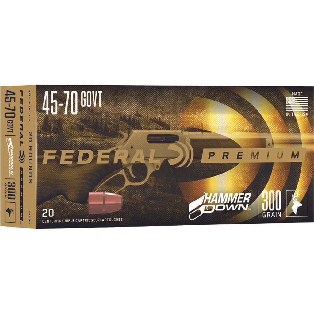 Velocities of Federal Premium HammerDown loads are customized to produce superior ballistics and terminal performance through lever-action barrel lengths. The construction of the molecularly bonded soft point bullets has also been adjusted for the best accuracy and expansion at those velocities. The geometry of each round’s case, bullet and cartridge ensures flawless cycling through tubular magazine and typical lever-action feeding systems. This ammunition is new production, non-corrosive, in boxer primed, reloadable nickel plated brass cases.