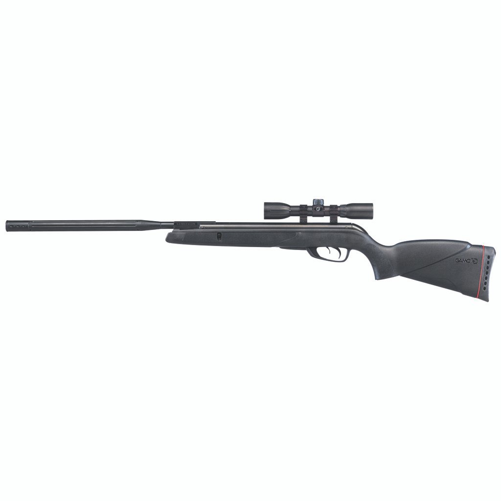 Break barrel air rifle with Whisper noise reduction technology and Inert Gas technology which uses a pneumatic cylinder instead of a spring. This results in higher energy and less vibration. Available in .177 cal. (1300 FPS) and .22 cal. (975 FPS). Includes 4×32 scope. Mass Weight: 5.64 lbs.