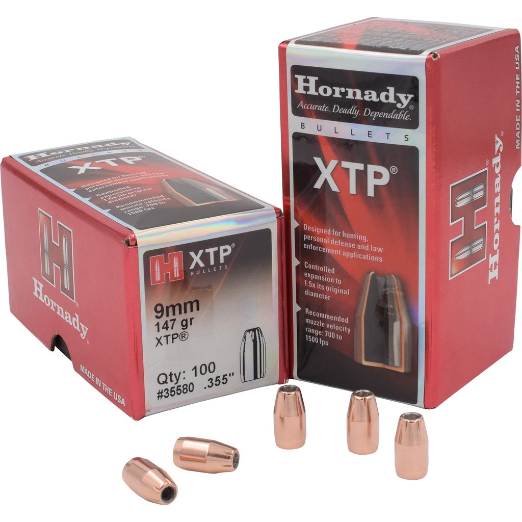 Hornady XTP bullets provide accuracy and dependability for hunting, self-defense, and law enforcement applications. These bullets have precise serrations that divide the XTP into symmetrical sections, strategically weakening the jacket and initiating controlled expansion even at low velocities. The gilding metal jacket protects the nose of the bullet. The hollow cavity functions properly on impact and ensures proper feeding in semi-automatics. Total uniformity of core density ensures balanced expansion and in-flight stability. Expansion is controlled by varying jacket thickness down the length of the XTP, providing an edge of plated bullets which have a uniform thickness over the entire bullet.