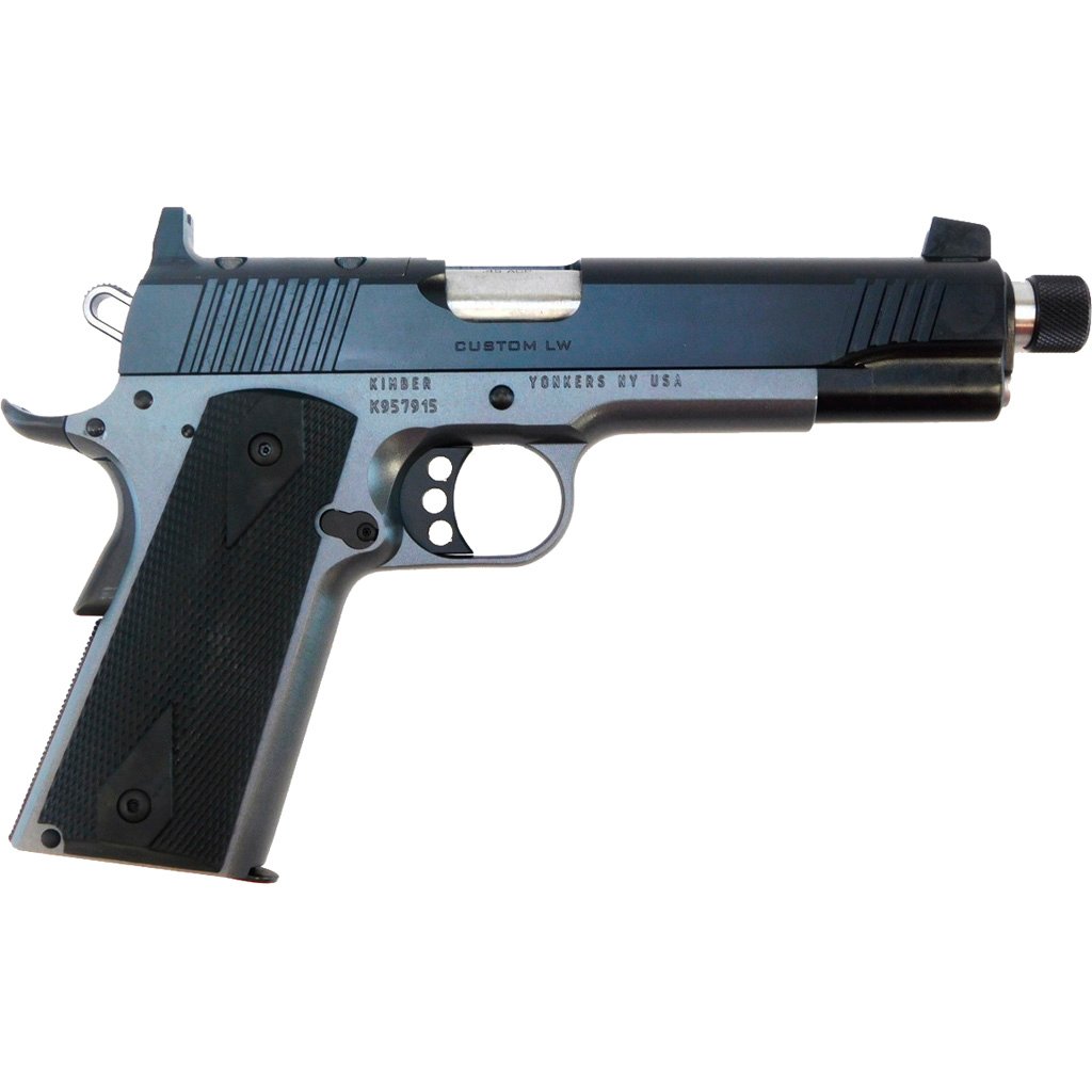 The Kimber Custom LW Shadow Ghost 1911 pistol in .45 ACP delivers exceptional performance with its 5-inch match grade stainless steel threaded barrel. The lightweight design features an aluminum frame and black rubber grips with diamond checkering for a secure grip. It comes optics-ready with suppressor height sights, and the single action mechanism is paired with a grip and thumb safety for dependable handling.