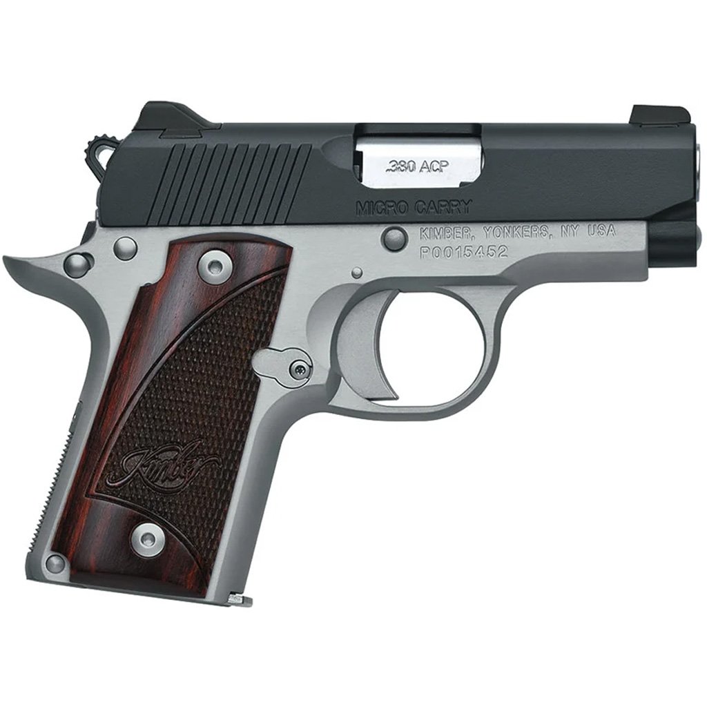 Features:380 ACP 2.75″ 1911 style pistol;Silver frame and Black slide with Rosewood grips;3-dot tritium night sights;7 round magazine.