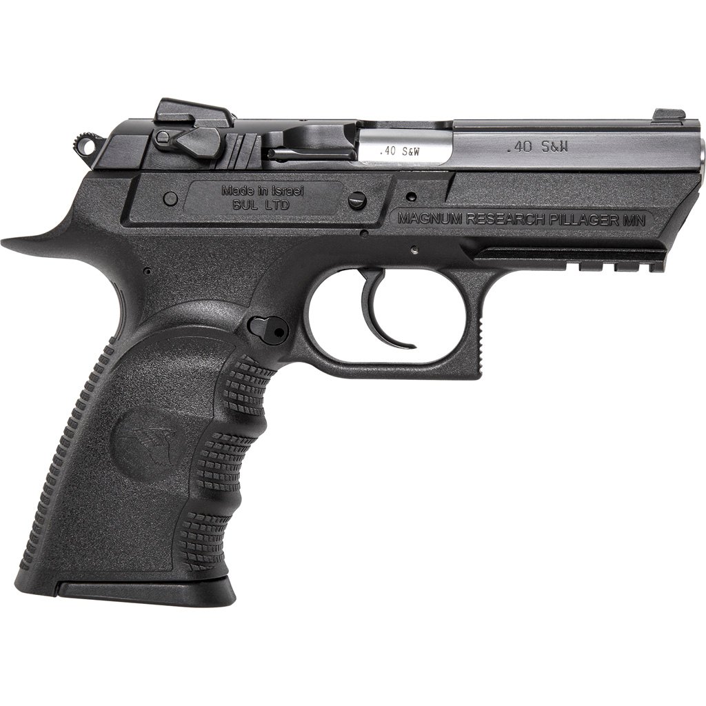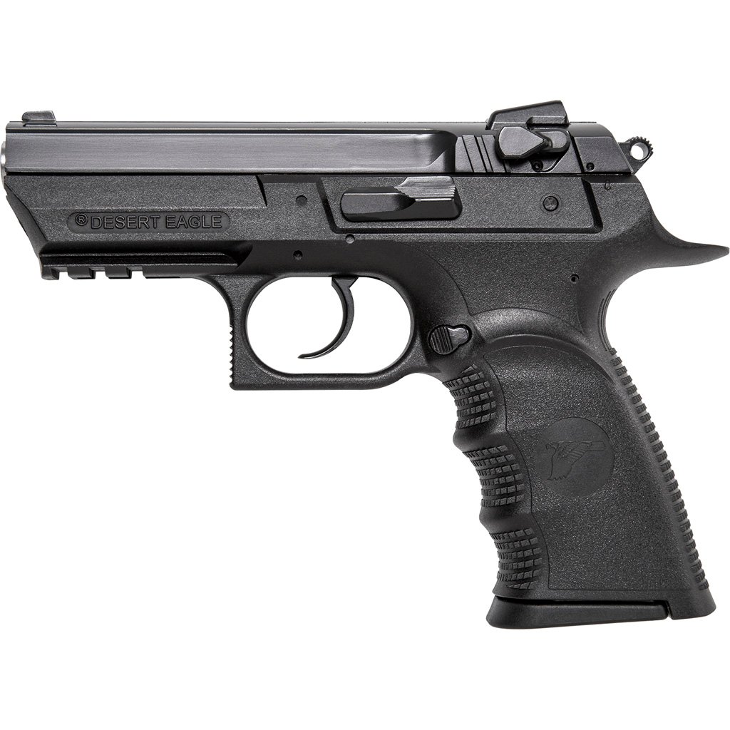 The Baby Eagle III semi-compact size polymer is a .40 S&W caliber pistol constructed of a polymer frame with a high quality carbon steel slide in a black textured finish on the frame and a black oxide finish on the slide. The Baby Eagle features a combat type, fixed, white three dot sight and a slide mounted ambidextrous safety and decocker. The height measures 5.75? with a weight of 25 ounces and a barrel length of 3.85?.