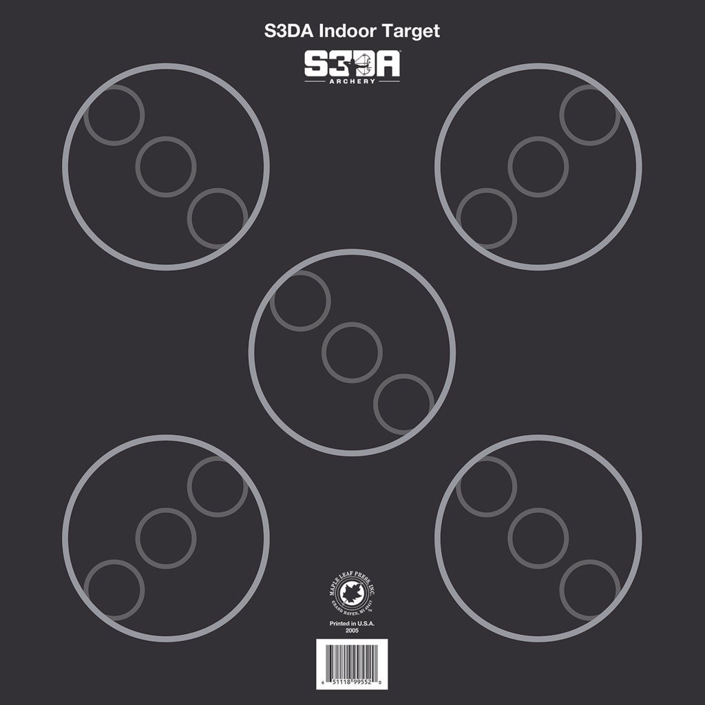 The Maple Leaf 3D Target Face from S3DA is an indoor paper target that mimics the ASA 3D scoring rings featuring a center 10 ring with both upper and lower 12 rings. Each target consists of 5 spots.