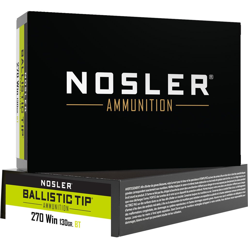 Nosler Ballistic Tip Rifle Ammunition 270 Win. 130 Gr. Bt Sp 20 Rd.
