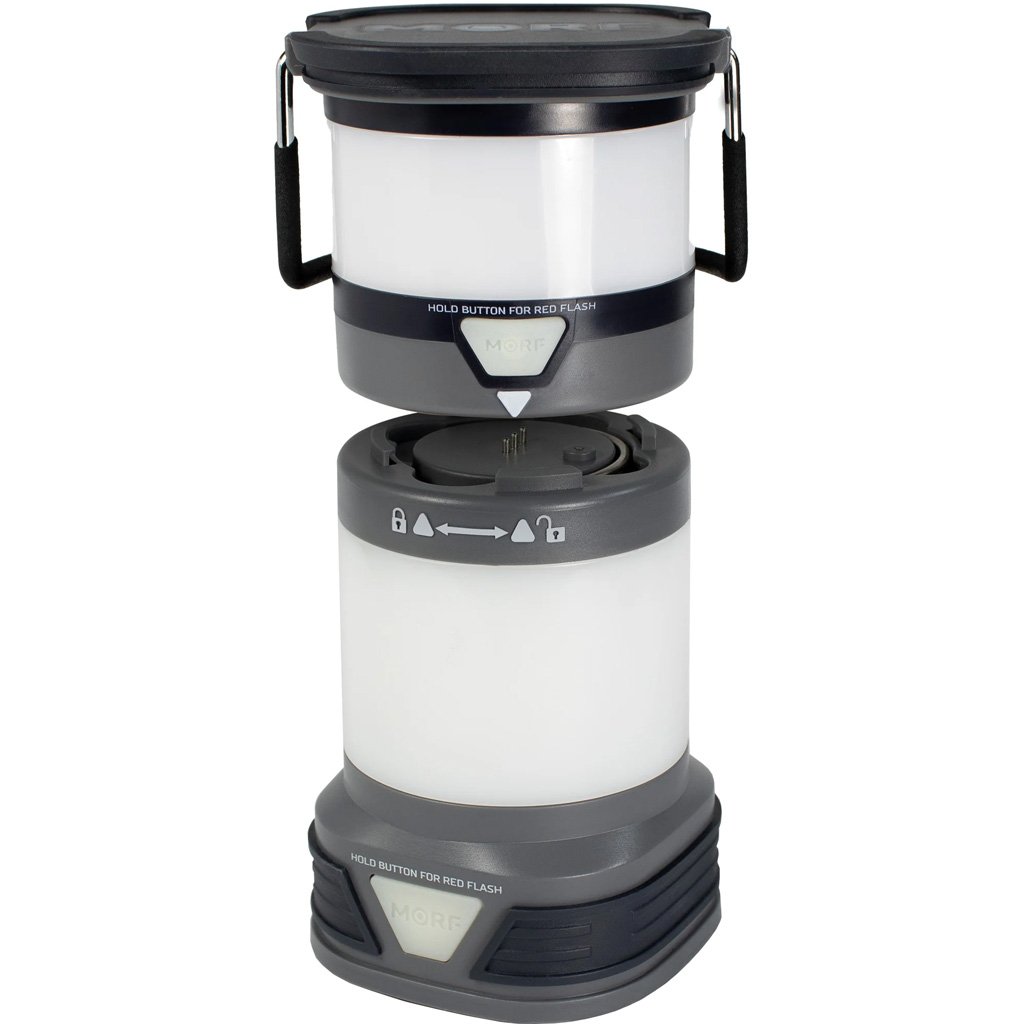 The Police Security MORF Lantern is a versatile, dual-function lighting solution designed for camping, emergencies, and outdoor adventures. With a simple twist, it splits into two separate lanterns, allowing you to double your illumination or share a light when needed. Featuring four light modes?low, high, night light, and red flash?it adapts to any setting, from a cozy campfire to a night-time hike. The built-in carrying handle and folding hook offer hands-free convenience, while the base lantern charges the removable top lantern when docked, ensuring a continuous light source. Powered by 4 AA batteries (included), the MORF Lantern is water-resistant and built for reliability in any environment.