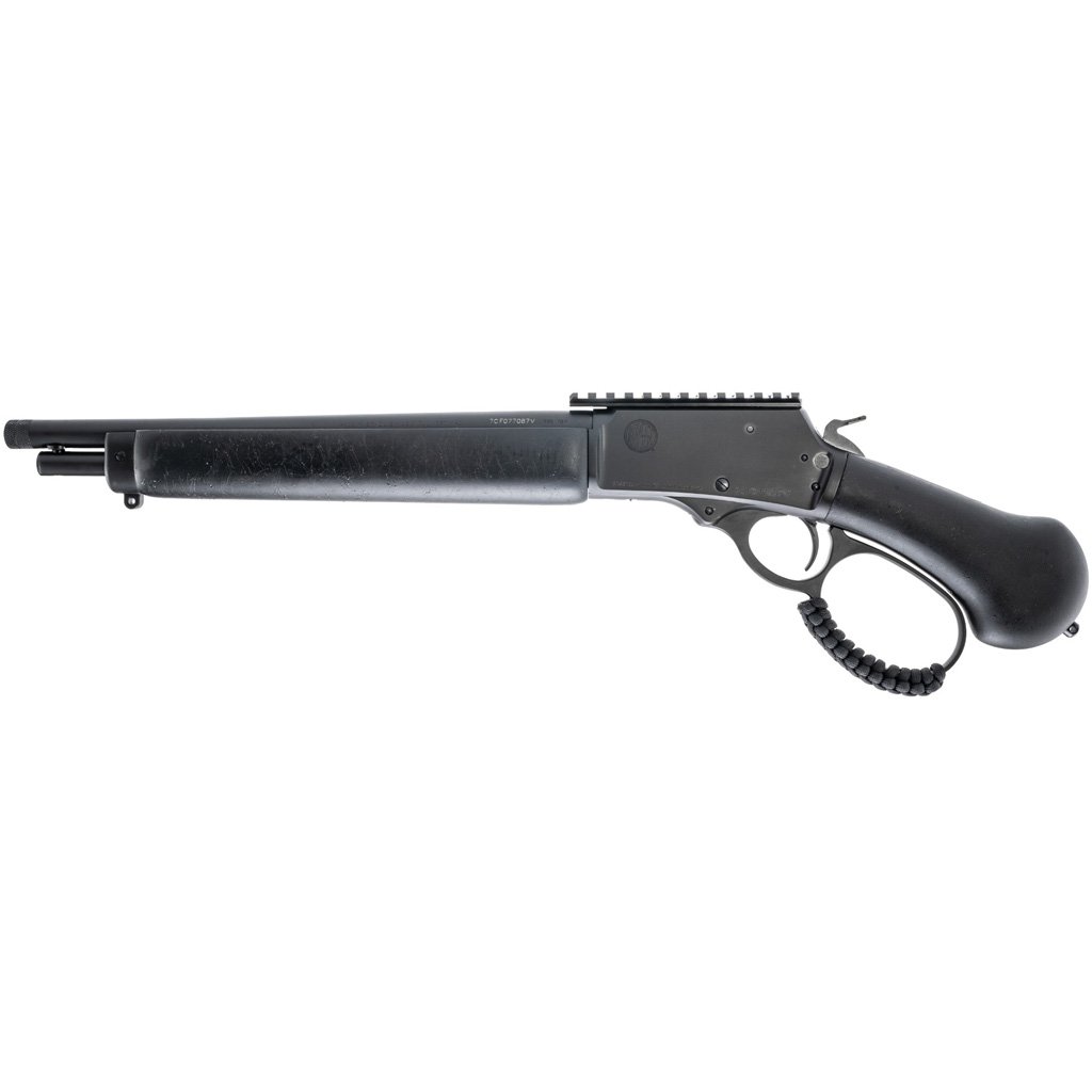 Features:Chambered in .357 Magnum;Lever action;13.25-inch barrel;4-round capacity;Cross bolt safety;Steel frame;No front sight;Picatinny rear sight rail;1:12″ RH twist rate;6 grooves;Overall length: 23.15 inches;Height: 6.20 inches;Width: 1.65 inches;Weight: 88 oz (unloaded);Threaded barrel;Compact lever-action pistol format