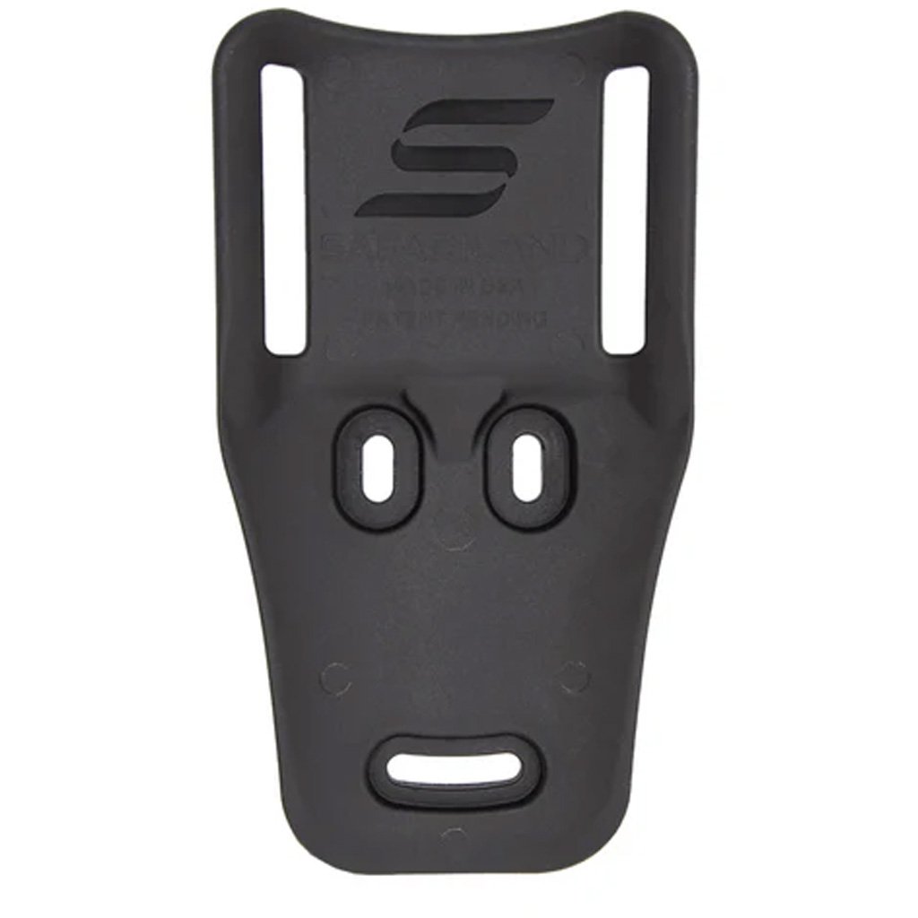 Features:Allows adjustable cant angle;Compatible with 3-hole patterned holsters;Integrates with Safariland UBL products;Fits belts up to 2.25 inches wide;Rigid, durable construction;Made in the USA