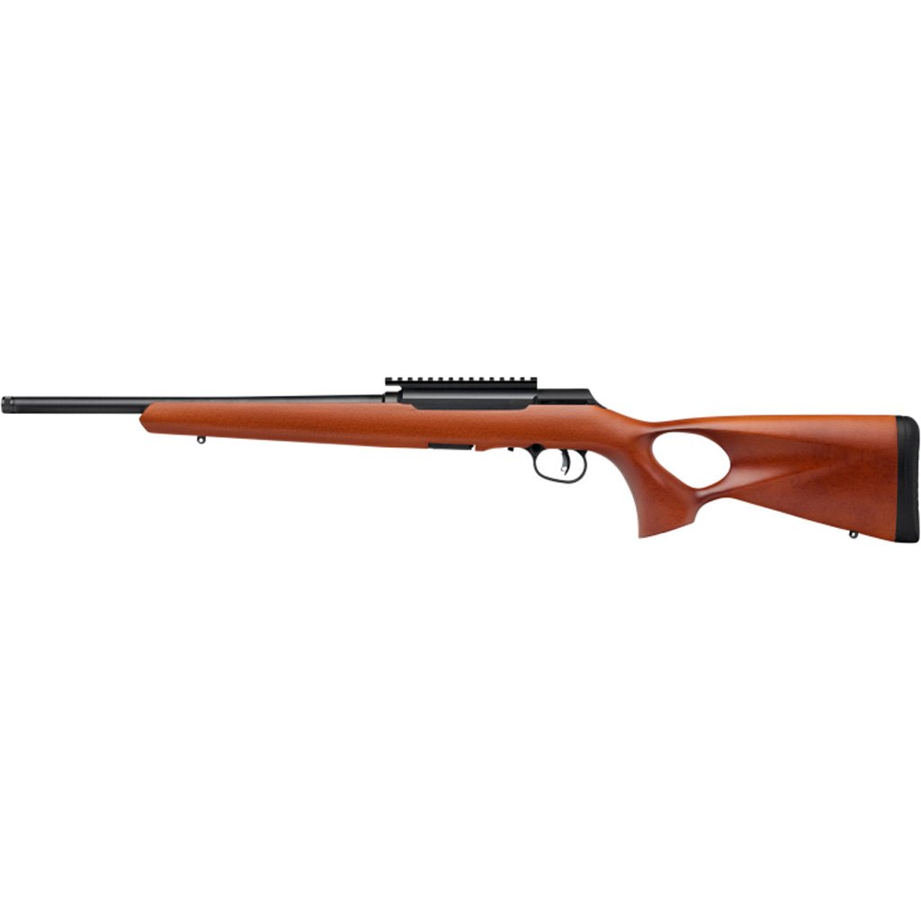 The Savage A22 Timber Thumbhole Rifle is a semi-automatic platform designed for precision and comfort. This .22 LR caliber rifle features a 10-round capacity and an 18-inch blued carbon steel barrel. The wood laminate stock, in an elegant grey finish, includes a thumbhole for enhanced stability and control. The rifle is not only a dependable choice for target shooters but also sports a classic design that’s equally at home in the field or at the range.