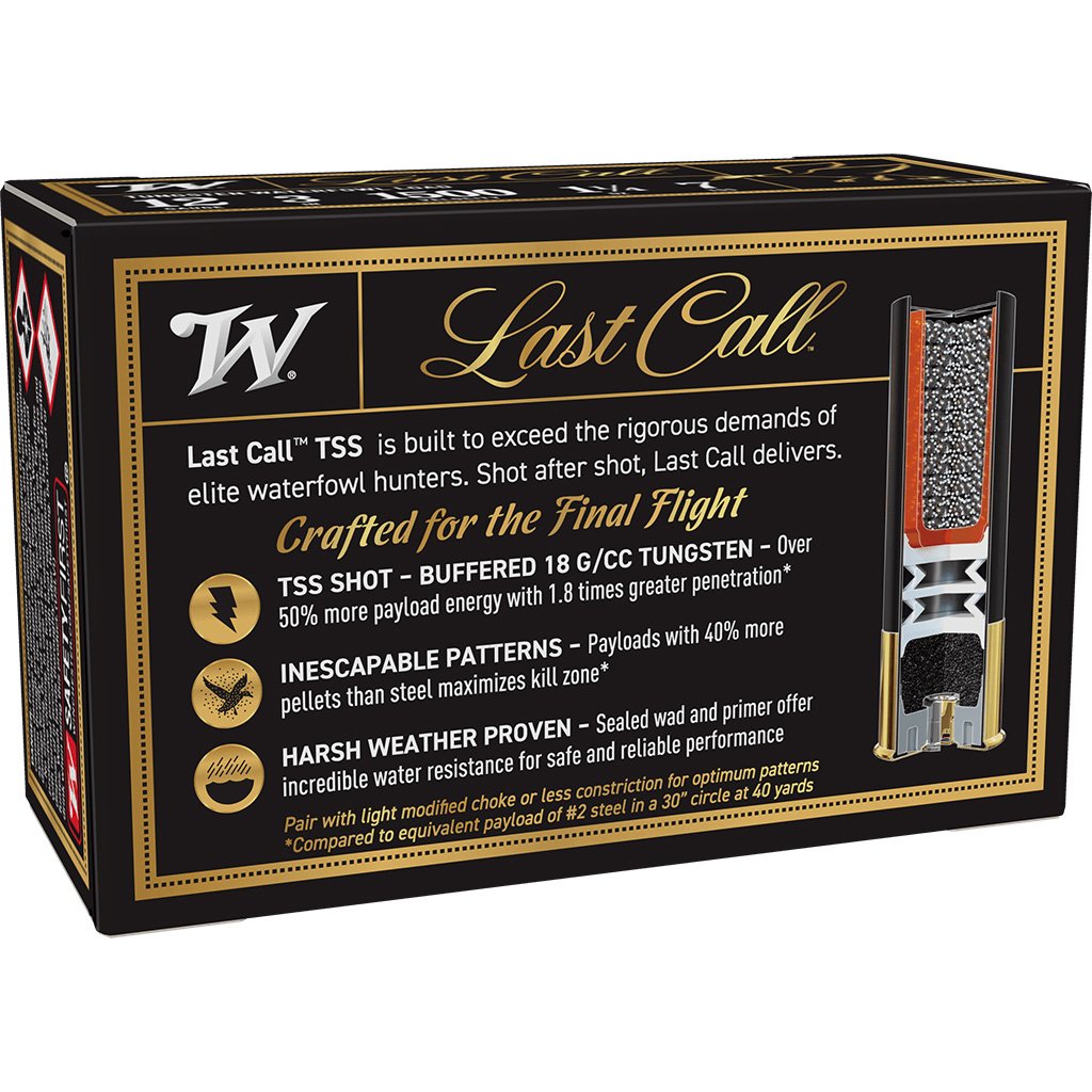 The Winchester Last Call Double Shot 12 Gauge Shotgun Ammo is crafted for powerful performance with precision shot blending. This 3-inch shell features a 1 1/4-ounce mix of BB and #7 TSS shot, delivering a potent combination of range and knockdown capability. Ideal for demanding hunting scenarios, it provides the penetration and pattern density needed for hard-to-reach targets. Packaged in a 25-round box, this premium load is engineered for hunters who want maximum performance from every shot.